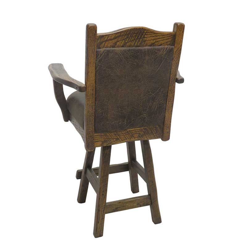 This beautifully crafted barnwood swivel bar stools by Hickory Mountain Furniture features an upholstered back and seat. A wonderful addition to any rustic style home or any home in need of a bit of rustic charm. These stools are as comfortable as they are beautiful. Handcrafted in the USA using distressed oak, each piece is meticulously crafted, making this chair as unique as it is functional. They ship with limited assembly (Instructions included) so you will be able to enjoy them right away.