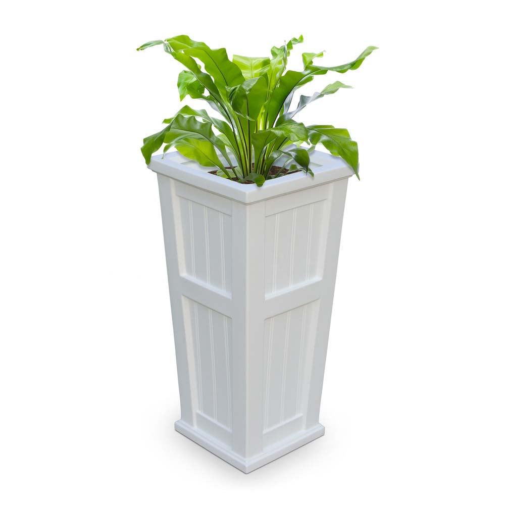 These planters are made from 100% high-grade Polyethylene that make it weatherproof and have an ultra-tough construction. Drainage holes to be drilled by customer depending on the desired use of the planter. The built-in water reservoir provides plants with consistent moisture. This collection is available in Black, and White.