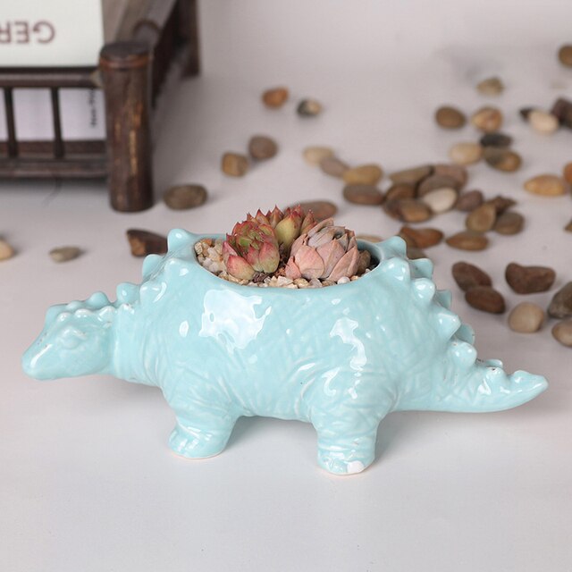 Ceramic Animal Flower Pot Cartoon Dinosaur Succulent Plant Flowerpot, Blue