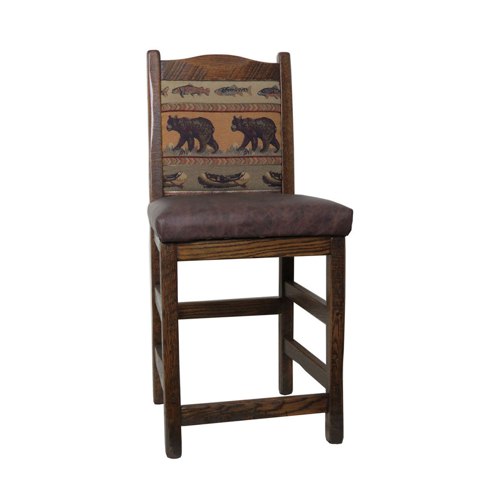 This beautifully crafted Barnwood Bar Stool w/ Upholstered Back and Leather Seat by Hickory Mountain Furniture features a rich dark walnut stain and upholstered seat. A wonderful addition to any rustic style home or any home in need of some rustic style, this Bar Stool w/ Genuine Leather Seat is perfect for an accent piece with a comfortable seat. They are mortised together with glue and screws for extra strength and finished with a clear catalyzed varnish for extra durability. Handcrafted in the USA, each piece is meticulously crafted, making this piece as unique as it is functional. They ship fully assembled so you will be able to enjoy them right away.