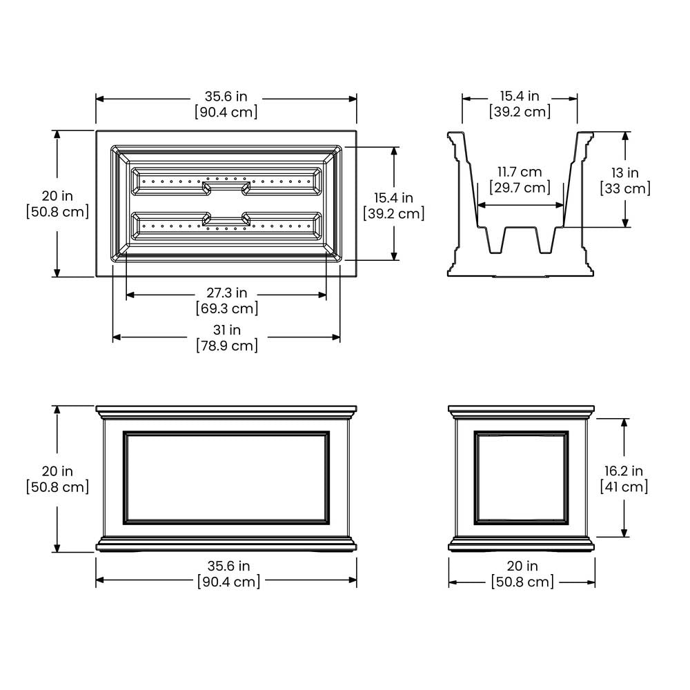 - 20in x 36in rectangular Fairfield planter