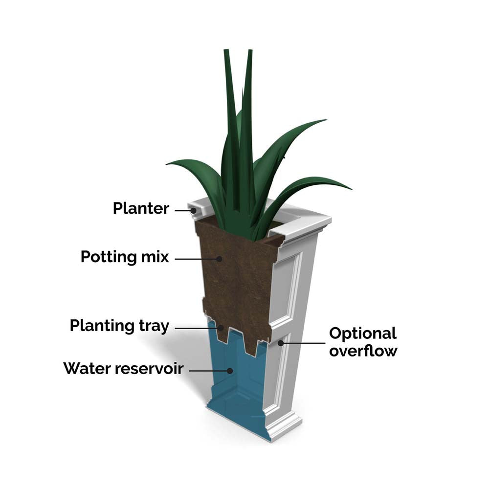 With its inset panels and classic design, the traditional Fairfield Collection is a timeless choice that will never go out of style. Whether it is used inside or outside, it is able to add elegance to just about any space. Enjoy the look of a wooden planter without any of the upkeep with this collection. These Polyethylene planters have a built-in water reservoir, are weatherproof and have an ultra-tough construction. This collection is available in Black, Espresso, Graphite Grey and White.