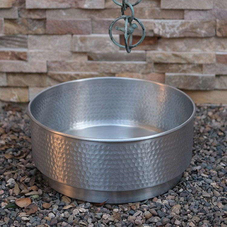 This Hand Hammered Aluminum Cylinder Basin is made of pure, unfinished aluminum. It’s beautiful as a planter or feature in your garden.