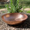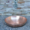 A utility basin for many purposes! It can be a table bowl or even a birdbath! Made of pure, unfinished copper, it will age beautifully, indoors or out! 16″ in diameter, 3 1/2″ deep. Color and surface texture may vary, as each one is made by hand.
